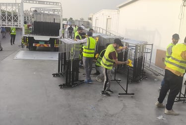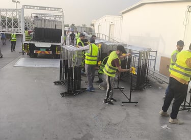 Event setup services in Dubai, including loading, unloading, on-site arrangements, dismantling, logistical support, and assistance in organizing. Our skilled team ensures a seamless and stress-free experience for your indoor or outdoor events.
